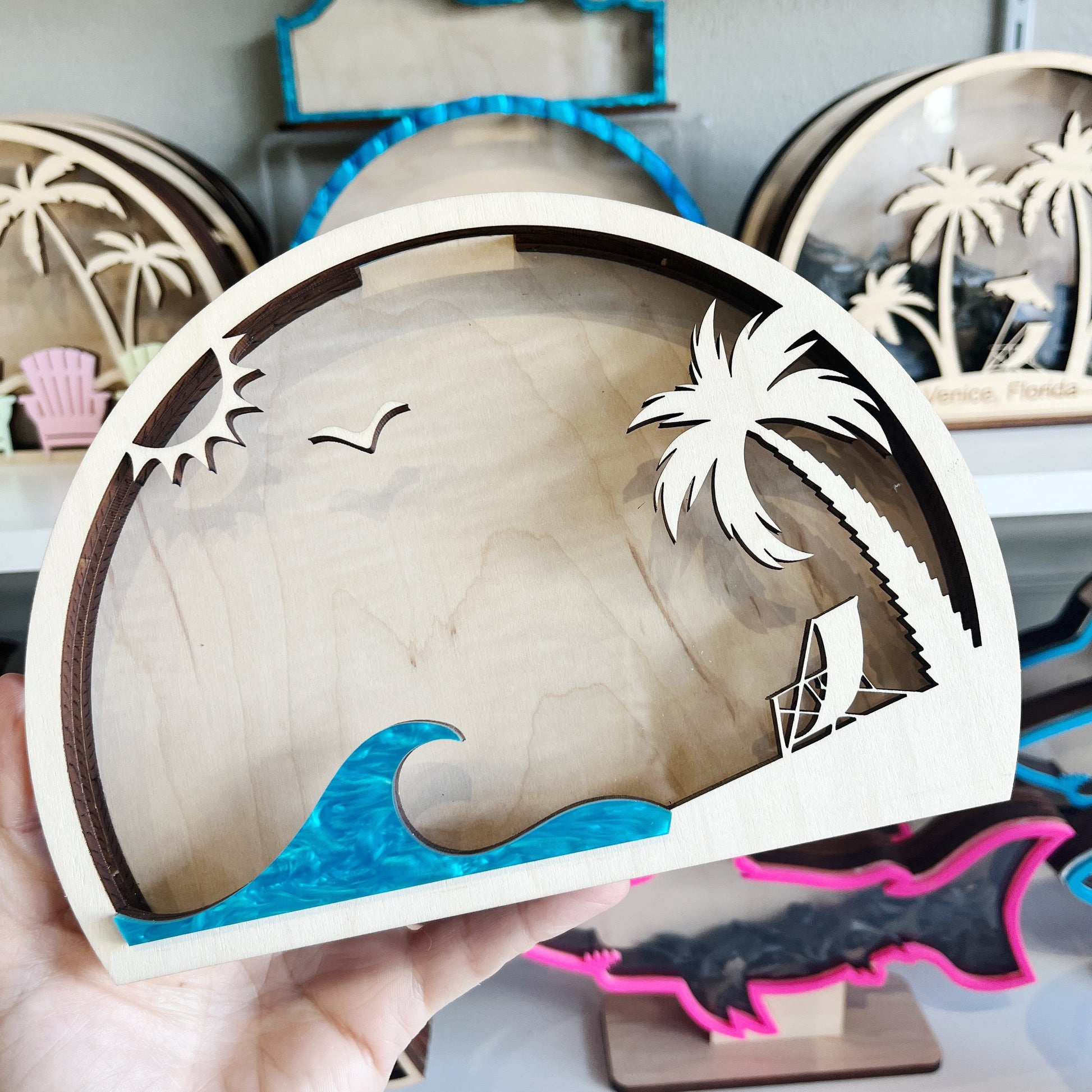 Classic Day at the Beach, Blue Wave and Palms - Shark Tooth Bank